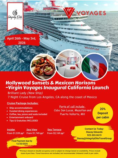 This exclusive voyage sets sail from the iconic port of Los Angeles, CA, on April 26th, 2026 returning May 3rd, 2026. We'll be exploring the stunning ports of Cabo San Lucas, Mazatlan, and Puerto Vallarta, with two luxurious days to unwind and indulge in the onboard amenities as we sail the mesmerizing Pacific.